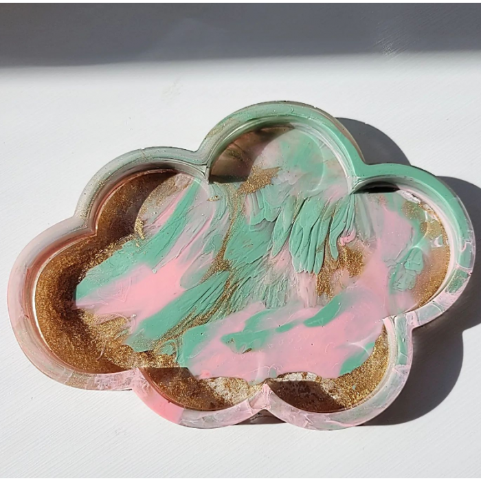 Our Aqua Cast PUFF Starter Kit includes the puffy cloud mould which measures 15cms x 11cms and is perfect for all those loose bits an bobs that we all accumulate. It's so easy to create beautiful homewares with Eli-Chem Aqua Cast eco resin, resi-TINT Acrylic Tints and resi-TINT MAX NEON Powders. Simply follow the step by step instructions and get creative.The 3kg Aqua Cast eco pouch contains enough Aqua Cast to make 47 cloud trinket trays or any other items depending on your moulds. The kit will be delivered along with instructions on how to use the products.