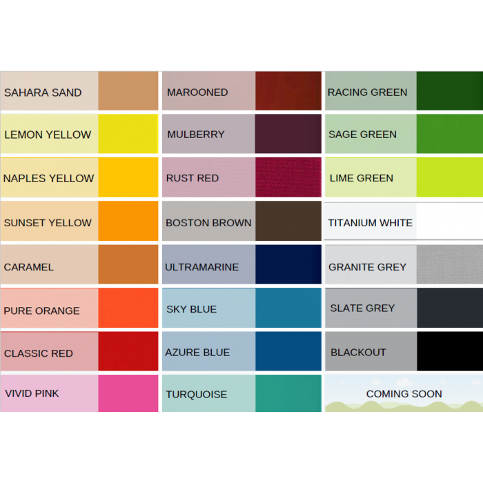 Most of the colours have a BW light fastness rating of 8, the exceptions are the Red Oxide and the Rutile Titanium Dioxide-derived colours (Titanium White, Classic Red, Rust Red and Pure Orange). These have a light fastness index of 6.